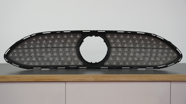 A premium manufacturer planned to introduce an illuminated radiator grille—a component that places the highest demands on appearance, tightness, and material quality. We were commissioned to develop a self-adhesive molded part that would ensure the fixation and sealing between the cover and the components behind it.